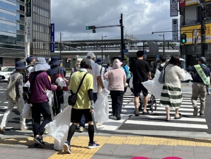 まずは江井ヶ島界隈の道路周辺のゴミ拾いを行いながら、万歩計を付けて歩くことでご自身のウォーキング歩数を可視化します。